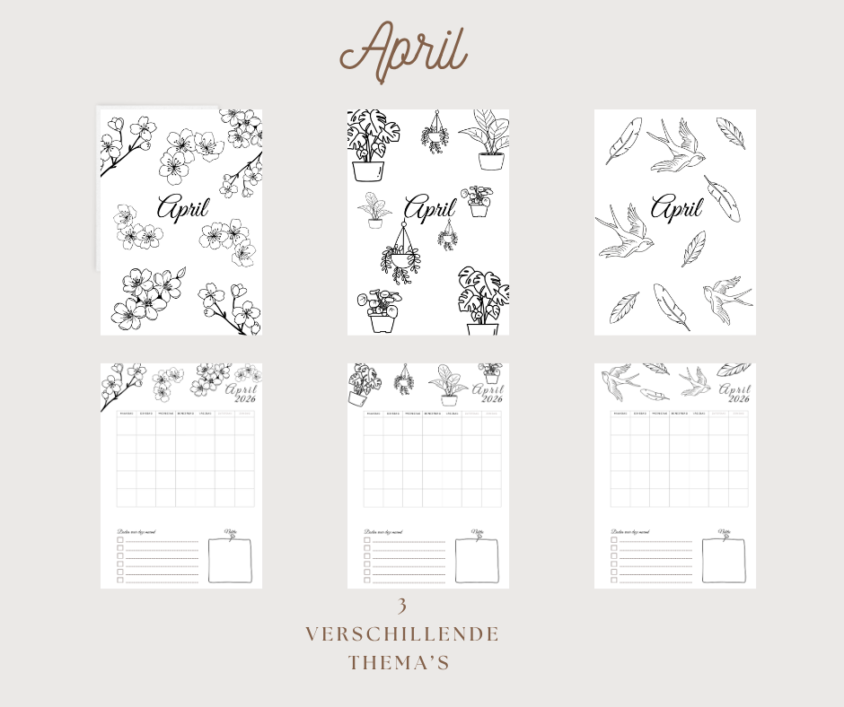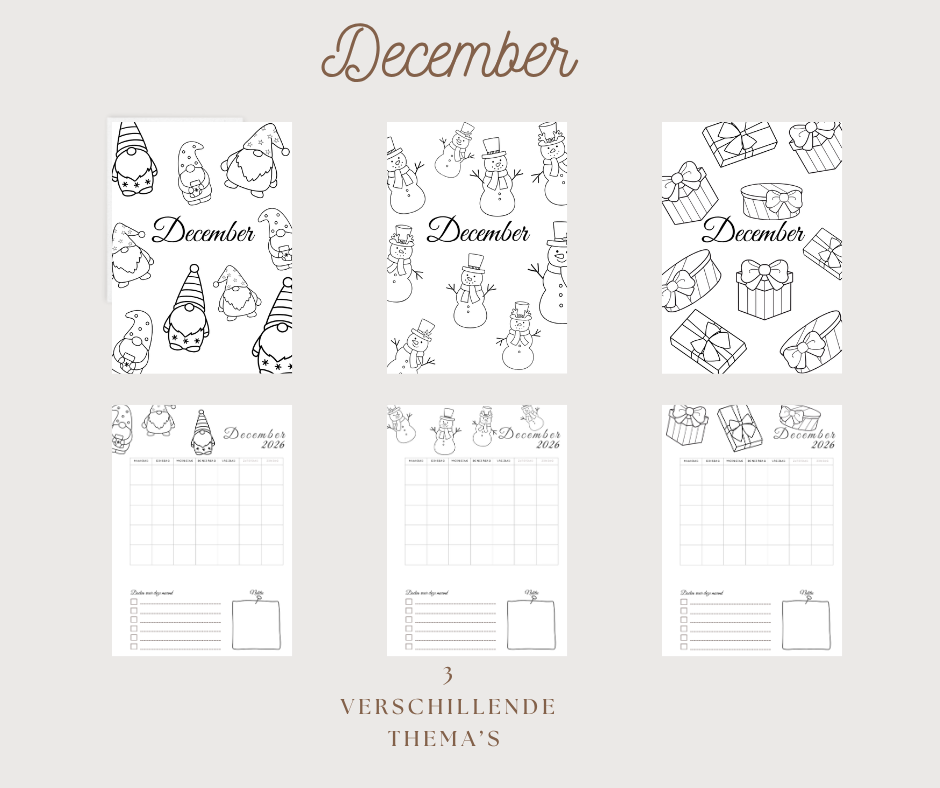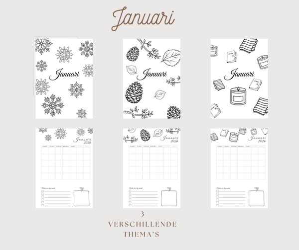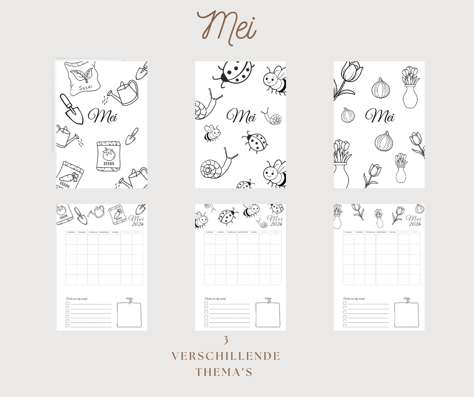Deel 3: 3 titelpagina's per maand en maandoverzicht met thema