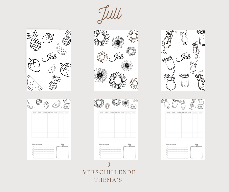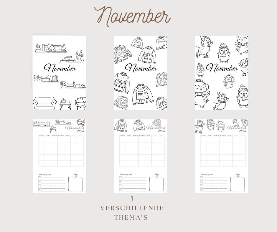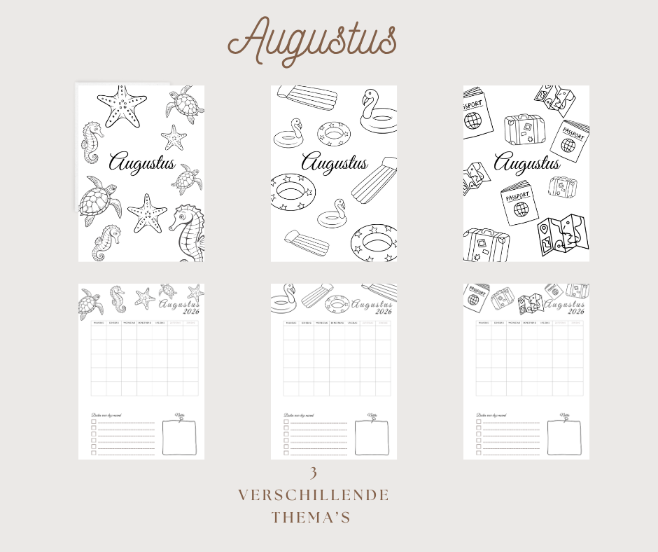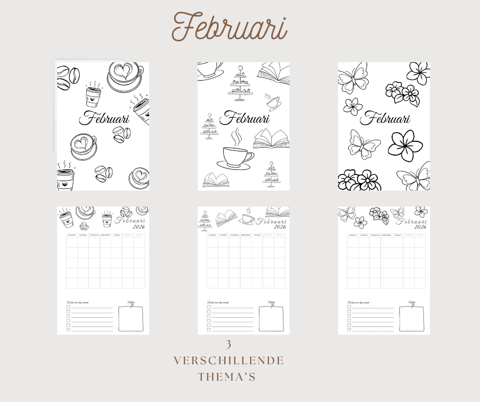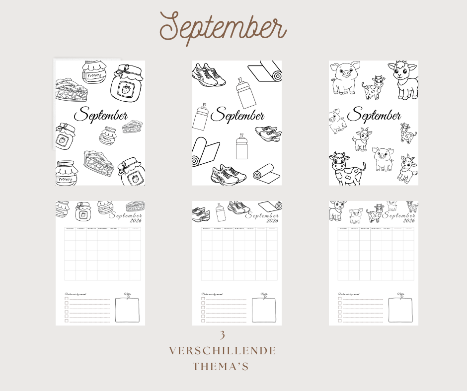 Deel 3: Per maand 3 pagina's en maandoverzichten met thema,s